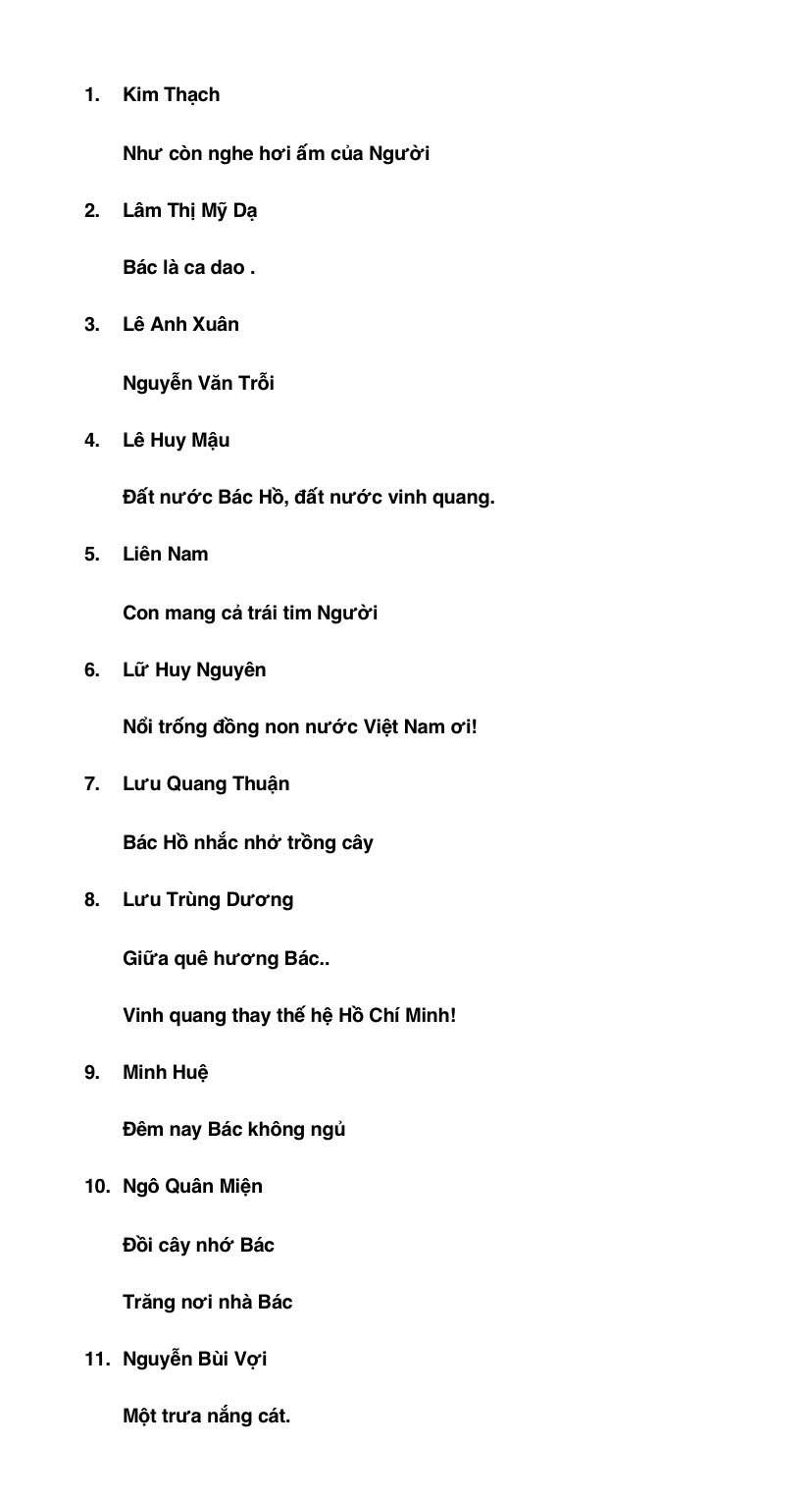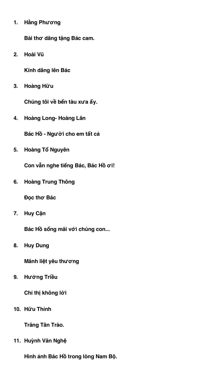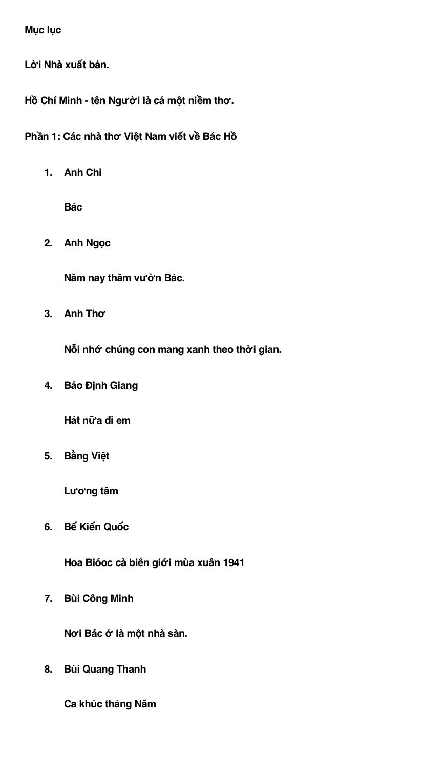 Tuyển thơ tập hợp 141 tác phẩm của 115 nhà thơ đương đại Việt Nam và nước ngoài viết về Bác Hồ trong suốt hơn 75 năm qua, kể từ Cách mạng mùa thu tháng Tám năm 1945 cho đến nay. Ngoài ra, phần cuối của cuốn sách, nhóm biên soạn còn giới thiệu tóm tắt tiểu sử của các tác giả để bạn đọc tiện tham khảo