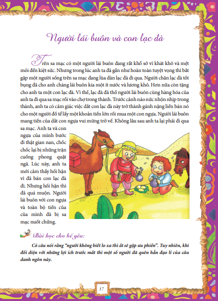 Ngụ ngôn là một trong những thể loại văn học ra đời sớm nhất trên thế giới. Ẩn sau những câu chuyện sinh động là những triết lý sâu sắc, không chỉ mang đến cho người đọc cảm nhận về cái đẹp mà còn nuôi dưỡng nguồn cảm hứng trí tuệ. Hơn thế, truyện ngụ ngôn thể hiện trí tưởng tượng phong phú, tình tiết sinh động, ý nghĩa sâu sắc, tính giáo dục nhẹ nhàng... đó chính là điều mà trẻ đặc biệt yêu thích và dễ dàng cảm thụ. Ý nghĩa của những câu chuyện ngụ ngôn sẽ theo trẻ suốt cuộc đời.