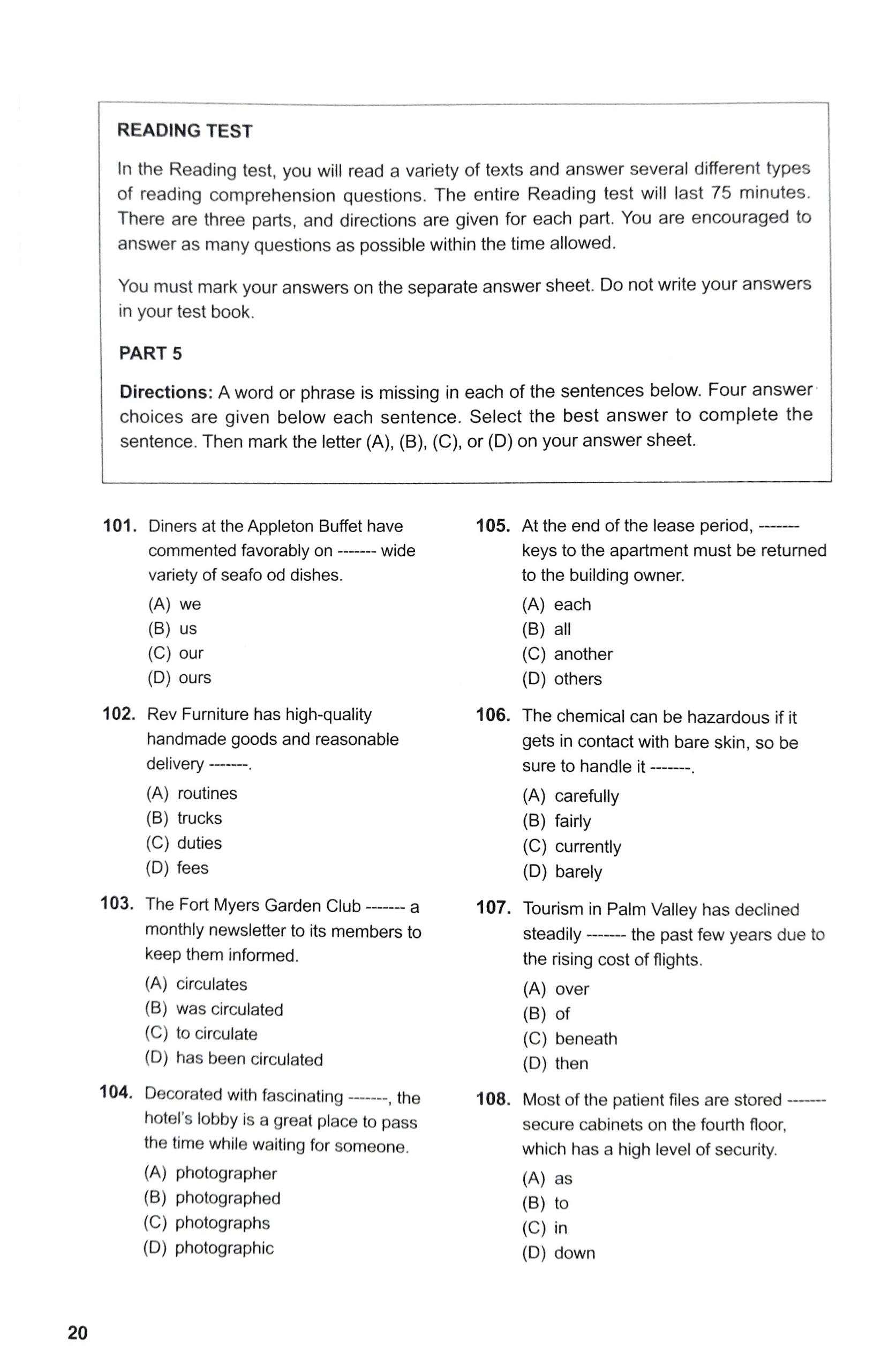 + Số lượng câu hỏi của Part 5 giảm, đồng thời tăng số lượng câu hỏi trong Part 6 và 7.