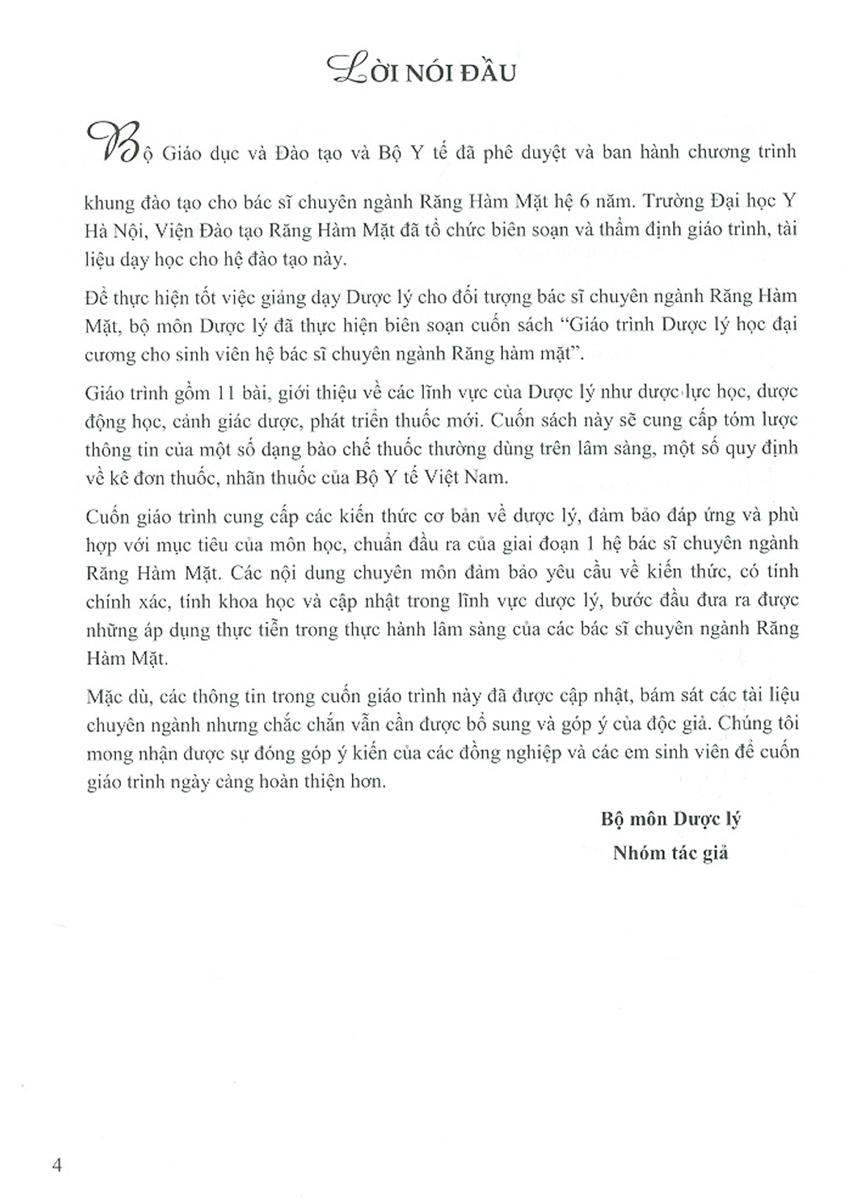 Mặt, bộ môn Dược lý đã thực hiện biên soạn cuốn sách “Giáo trình Dược lý học đại