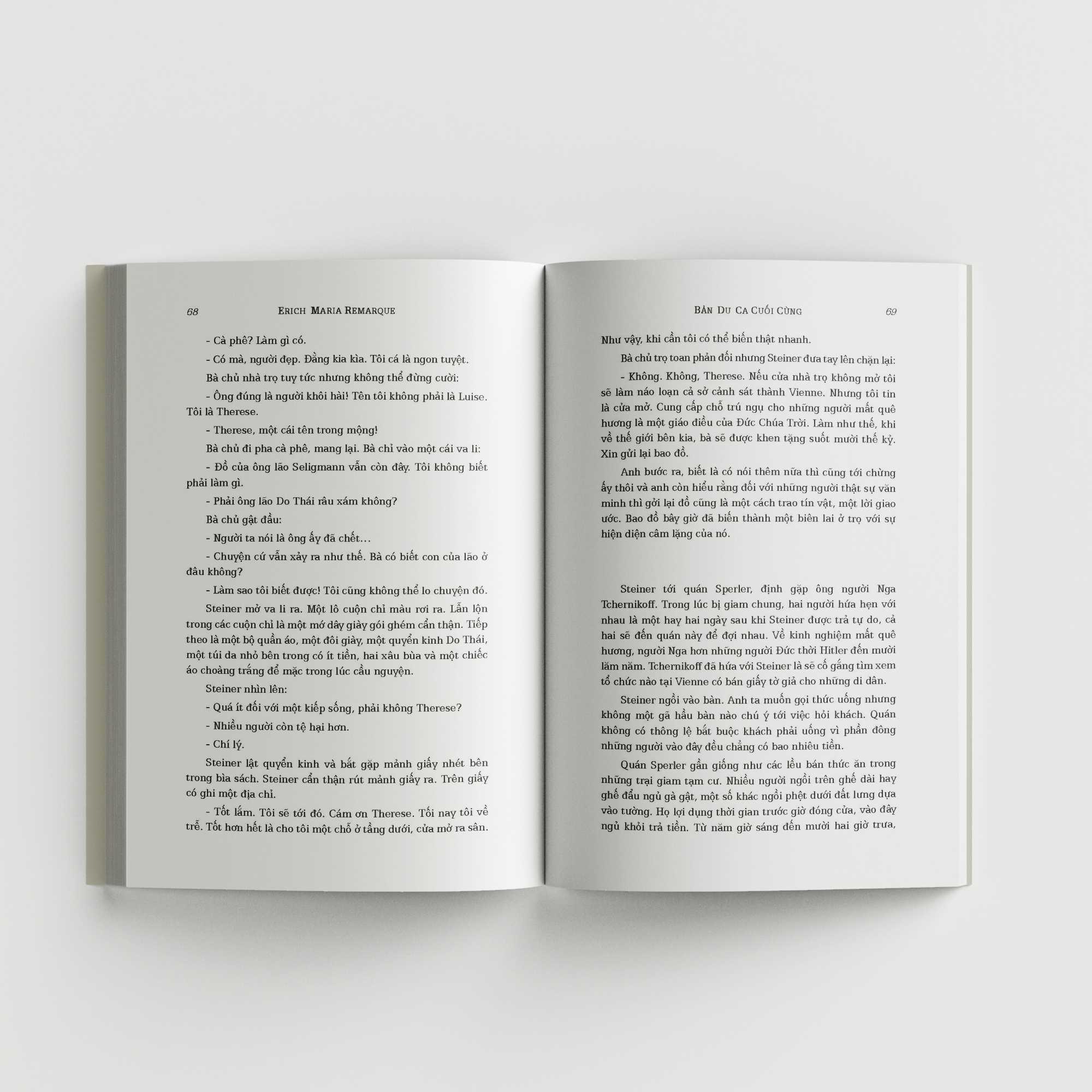 Ra đời năm 1939, Bản du ca cuối cùng (Liebe Deinen Nächsten) là thiên tiểu thuyết đầu tiên của Remarque viết về những thân phận người trôi nổi trong cuộc sống lưu vong. Tác phẩm đã tái hiện một châu Âu trong thời kỳ tối tăm ly loạn, nhưng đằng sau đó lại là bài ca về cái đẹp, cái thiện, về niềm tin mãnh liệt vào cuộc sống và con người.