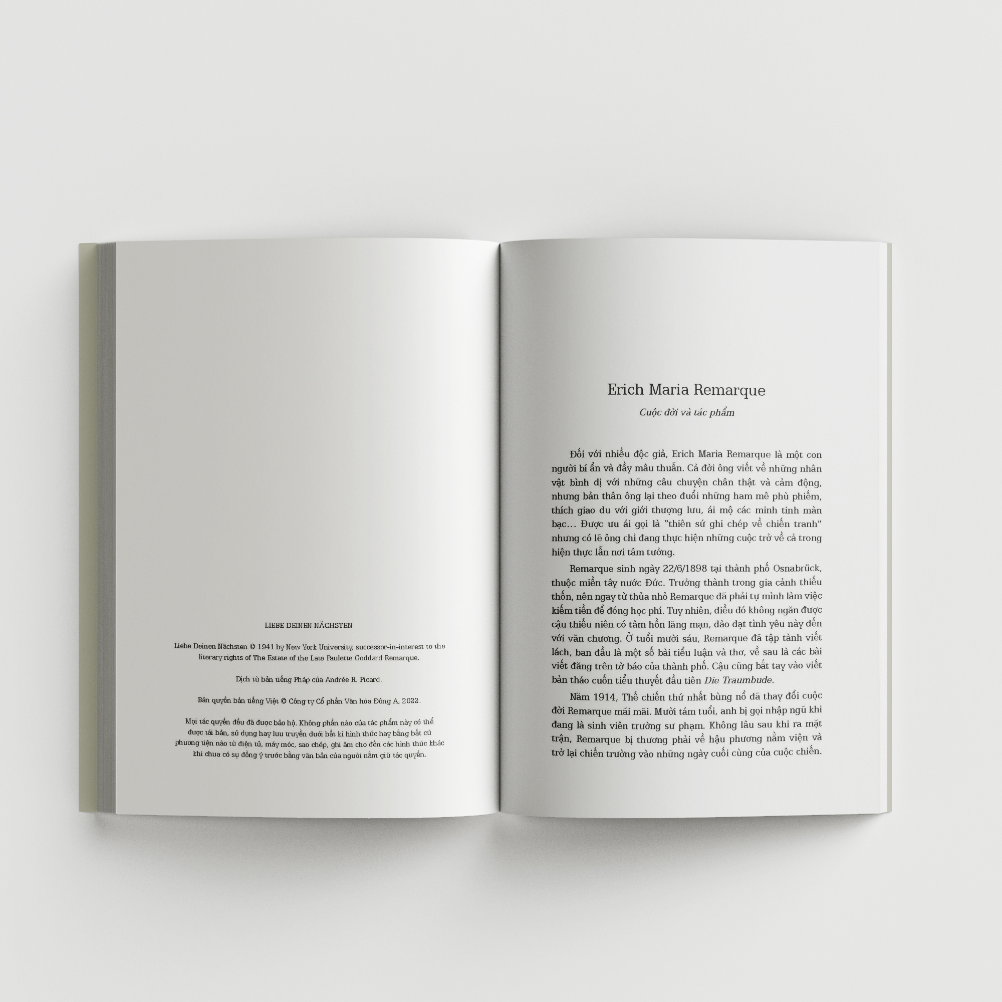 Remarque (1898 – 1970) là nhà văn lừng danh người Đức. Ông nổi tiếng với Phía Tây không có gì lạ, một trong những tác phẩm hay nhất về Thế chiến I. Các tác phẩm tiêu biểu khác của ông như Ba người bạn, Khải hoàn môn, Đêm Lisbon…cũng góp phần không nhỏ trong việc khẳng định tài năng và danh tiếng của ông khắp năm châu. Năm 1931, ông được đề cử cả giải Nobel Văn chương và Hòa bình.