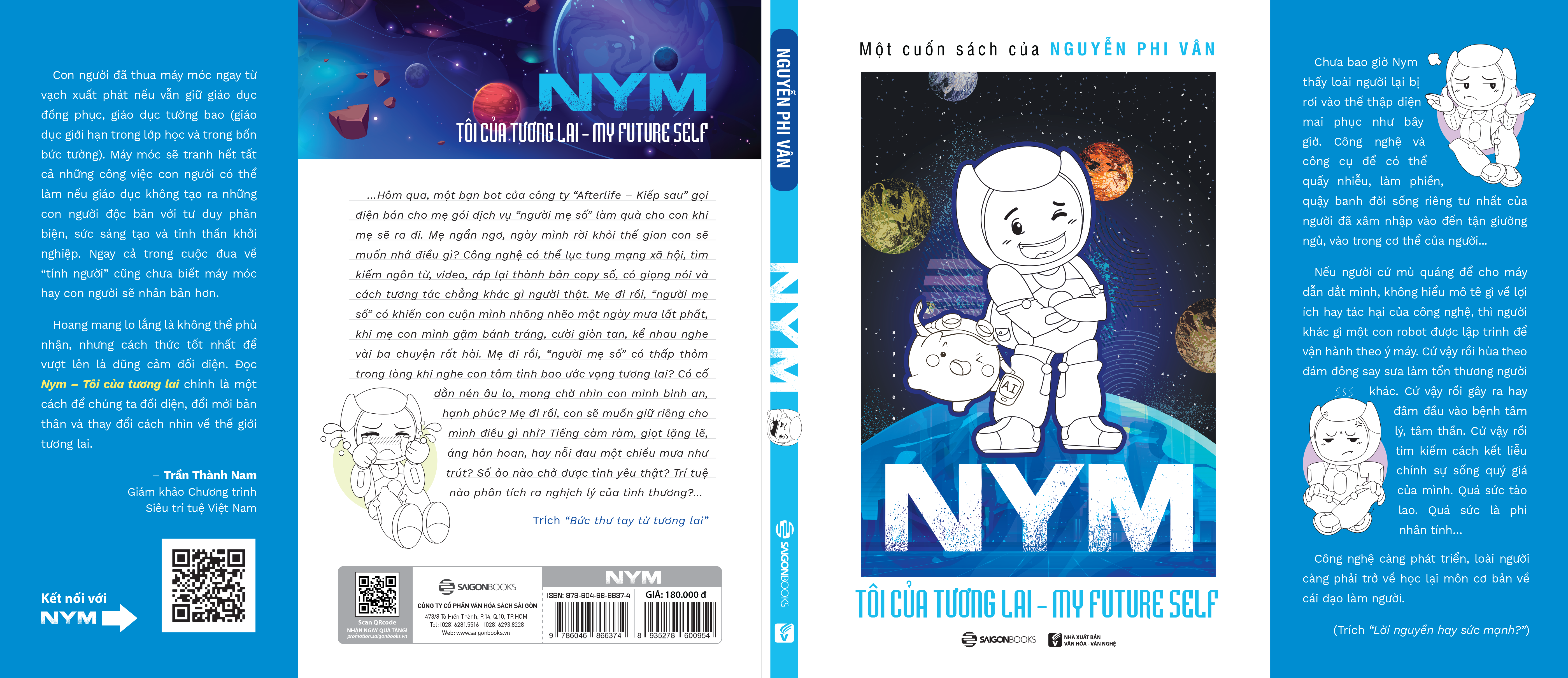 Với NYM – Tôi của tương lai, tác giả Nguyễn Phi Vân sẽ khiến chúng ta đi lạc vào một thế giới mới: nơi một “con robot” luôn tự nhận mình là người hơn một con người; nơi hai AI bàn luận về sex; nơi AI giải nghĩa cho chúng ta những phát minh sẽ định hình thế kỷ mới...