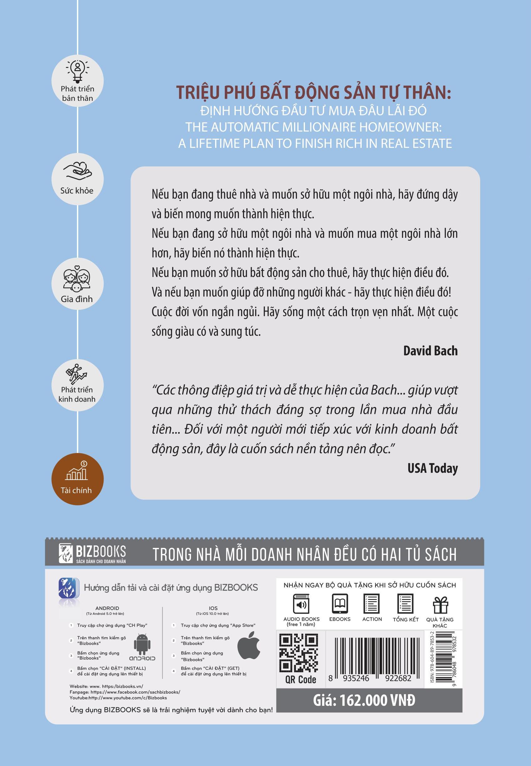 “Triệu phú bất động sản tự thân” là cuốn sách hay và rất thực tế, mang lại nhiều lời khuyên cho độc giả đặc biệt là những cặp vợ chồng trẻ muốn có một phương pháp quản lý tài chính hiệu quả, hôn nhân viên mãn cuộc sống vợ chồng hạnh phúc.