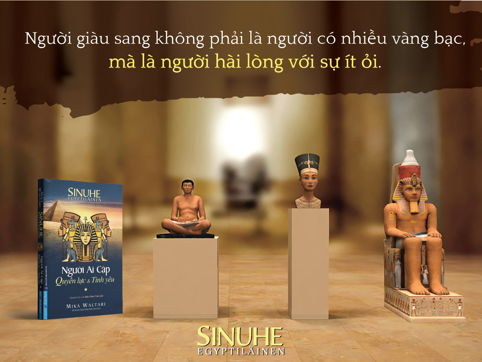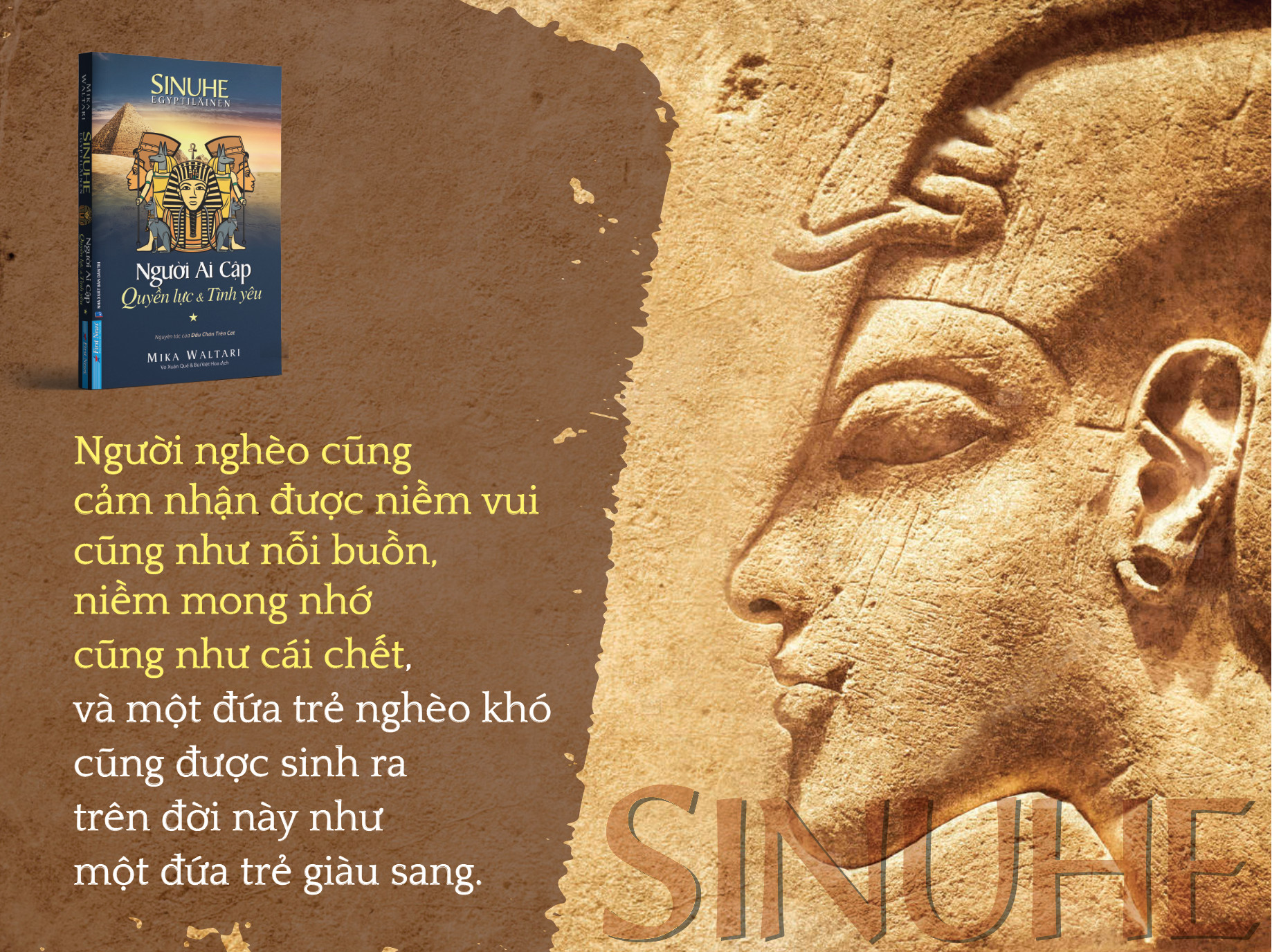 “Người Ai Cập - Quyền lực và Tình yêu” gồm 15 sách kể về cuộc đời danh y Sinuhe vào thời Ai Cập cổ đại, những năm 1390-1335 trước Công lịch. Những bạn đọc đã rất yêu thích bản phóng tác “Dấu chân trên cát” của Nguyên Phong sẽ cảm thấy vô cùng thú vị khi có cơ hội đọc bản nguyên tác này. Là một tác phẩm văn học kinh điển, niềm tự hào của người Phần Lan, “Người Ai Cập - Quyền lực và Tình yêu” tái hiện sống động một giai đoạn lịch sử đáng nhớ của Ai Cập cổ đại, thông qua cuộc đời đầy sóng gió của nhân vật Sinuhe, để lại những điều chiêm nghiệm sâu sắc.