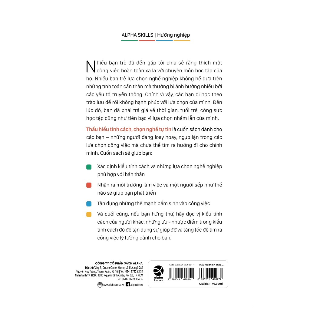 Phân chia và phân tích các kiểu tính cách theo 4 nhóm màu: vàng, đỏ, xanh da trời, xanh lá cây và theo phong cách hướng nội/hướng ngoại để nêu ra đặc điểm nổi bật, ưu điểm, nhược điểm của từng kiểu tính cách, từ đó gợi ý những kiểu công việc cũng như môi trường làm việc phù hợp cho mỗi người.
