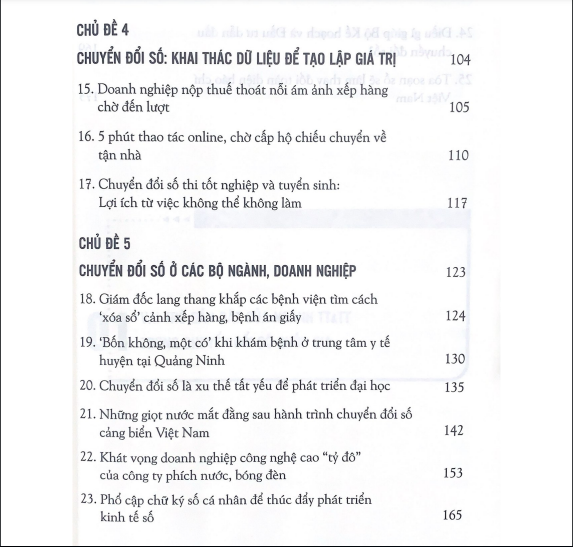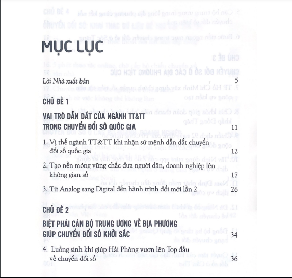 Nội dung cuốn sách trình bày các câu chuyện, bài viết về chuyển đổi số với các chủ đề : Vai trò dẫn dắt của ngành Thông tin Truyền thông trong chuyển đổi số quốc gia, giúp các địa phương chuyển đổi số hiệu quả, chuyển đổi số ở các bộ, ngành, doanh nghiệp và khai thác hiệu quả dữ liệu sẵn có. Từ đó giúp mỗi cá nhân, các doanh nghiệp, bộ, ngành, địa phương có sự nhìn nhận, đánh giá, dễ dàng nghiên cứu và vận dụng thực tế vào công việc một cách phù hợp, hiệu quả