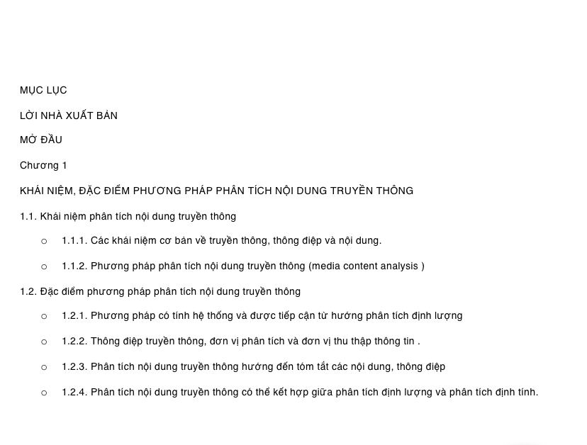 Nội dung cuốn sách không chỉ dừng lại ở trình bày tổng quan, cơ sở lý luận, phương pháp tiếp cận mà còn hướng tới xây dựng mô hình hóa cụ thể các bước tiến hành nghiên cứu đối với từng hướng tiếp cận nghiên cứu, đặc biết hướng tới những sản phẩm nghiên cứu có chất lượng cao với sự tham gia hỗ trợ của các phần mềm ứng dụng trong phân tích nội dung tài liệu truyền thông báo chí với kỳ vọng đạt được những sản phẩm hiệu quả và có chất lượng cao