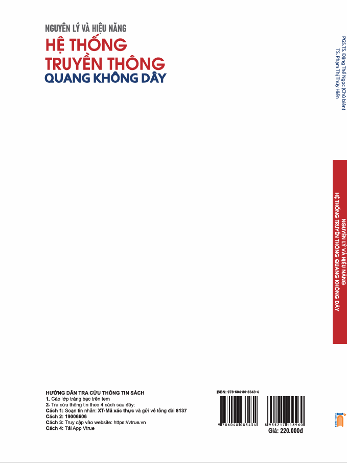 Cuốn sách này nhằm cung cấp những kiến thức cơ bản về mô hình kên truyền khí quyển và hiệu năng của các hệ thống truyền thông quang không dây FSO. Ngoài ra sách còn cung cấp các kiến thức nâng cao về áp dụng các kỹ thuật xử lý tín hiệu tiên tiến nhằm cải thiện hiệu năng hệ thống SFO, bao gồm : các kỹ thuật điều chế đa mức / trạng thái, kỹ thuật chuyển tiếp điện / quang, kỹ thuật phân tập không gian và đa truy cập cho hệ thống FSO điểm - đa điểm.