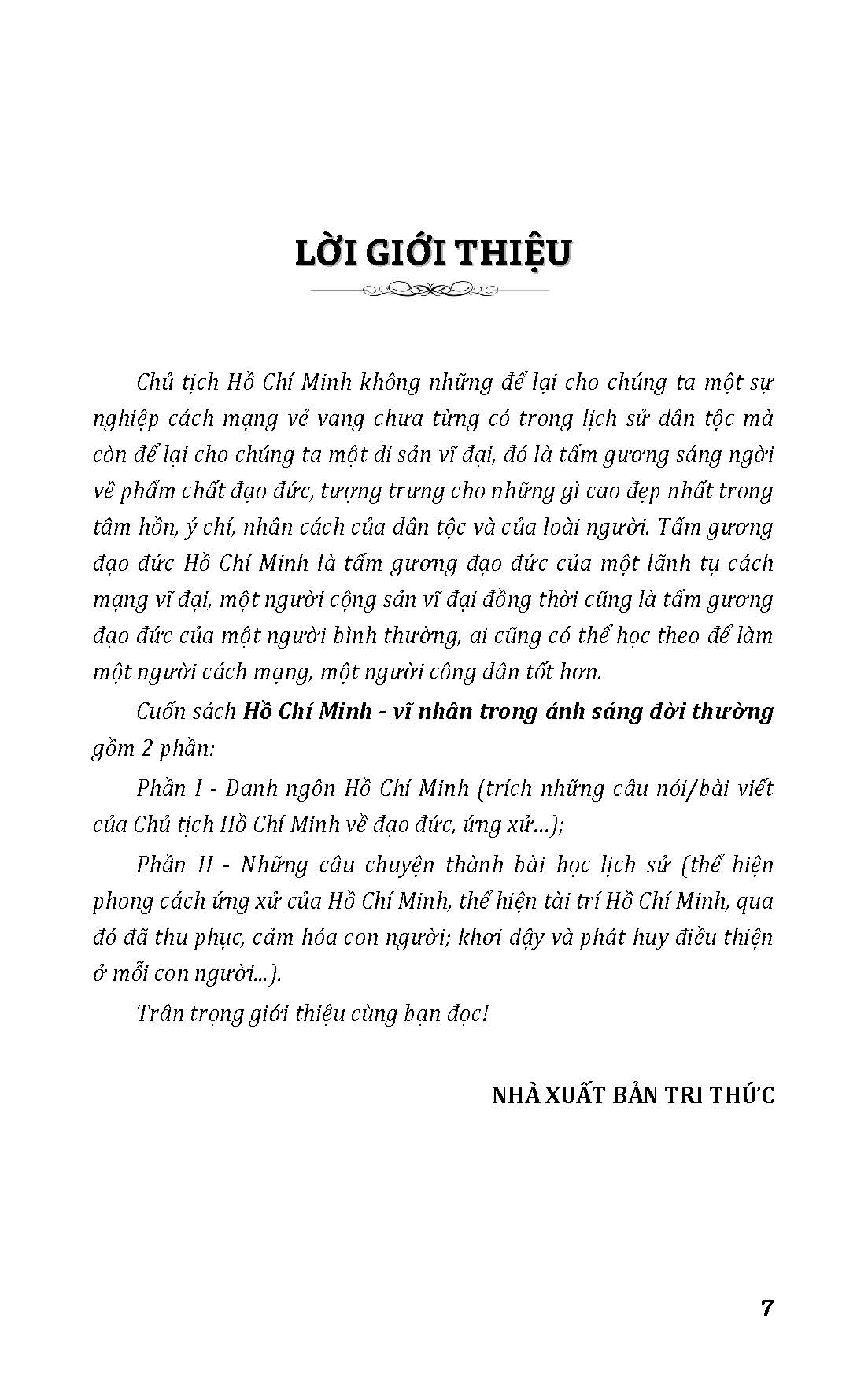 Tấm gương sáng ngời về phẩm chất đạo đức, tượng trưng cho những gì cao đẹp nhất trong tâm hồn, ý chí, nhân cách của dân tộc và của loài người – Chủ tịch Hồ Chí Minh, một lãnh tụ cách mạng vĩ đại, một người cộng sản vĩ đại, với những câu chuyện thành bài học lịch sử thể hiệnphong cách ứng xử, sự tài trí, qua đó đã thu phục, cảm hóa, khơi dậy và phát huy điều thiện ở mỗi con người để học tập noi theo, để làm một người cách mạng mẫu mực, một người công dân tốt.