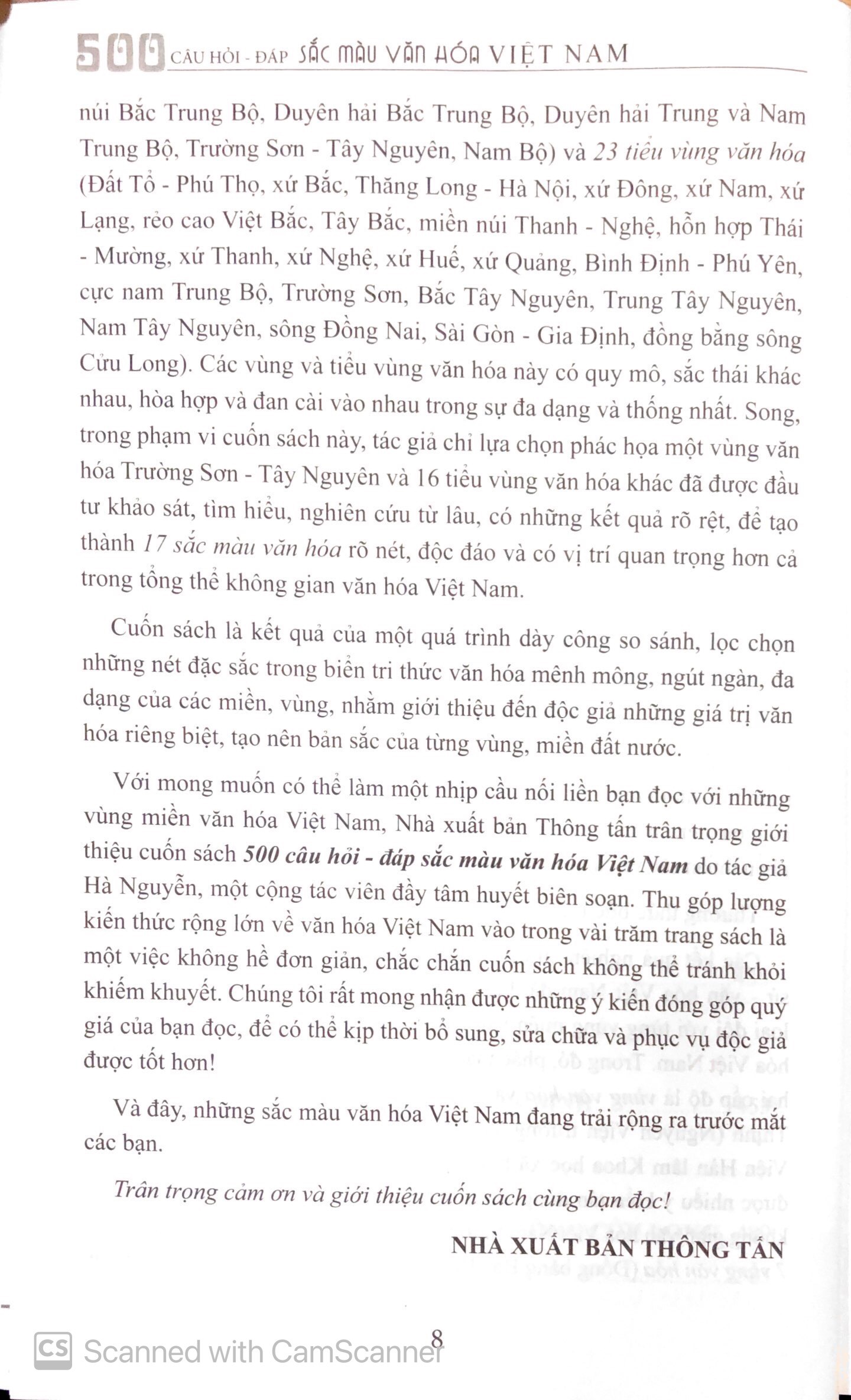 Cuốn sách là kết quả của một quá trình dày công so sánh, lọc chọn những nét đặc sắc trong biển tri thức văn hóa mênh mông, ngút ngàn, đa dạng của các miền, vùng, nhằm giới thiệu đến độc giả những giá trị văn hóa riêng biệt, tạo nên bản sắc của từng vùng, miền đất nước.